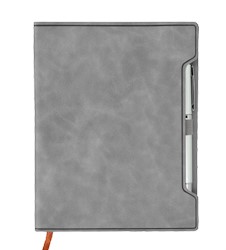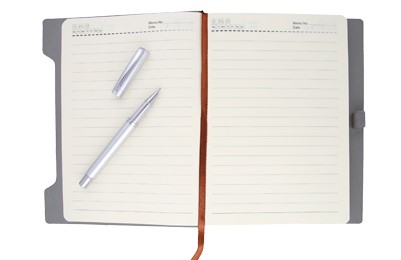 Agenda diaria con calendario de 2023 a 2026. Dentro de sus apartados contiene: datos personales, teléfonos de emergencia y festividades personales. Incluye bolígrafo.