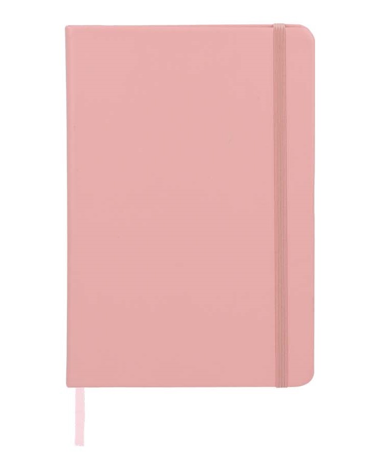 Libreta de poliuretano con 90 hojas rayadas y tonos pastel.