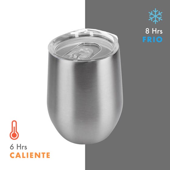 Doble pared. Cerrado al vacío. Pared interna y externa acero inoxidable. Tapa de plástico con válvula de seguridad. Mantiene temperatura caliente 6 hrs y temperatura fría 8 hrs aproximadamente. Incluye caja individual.
